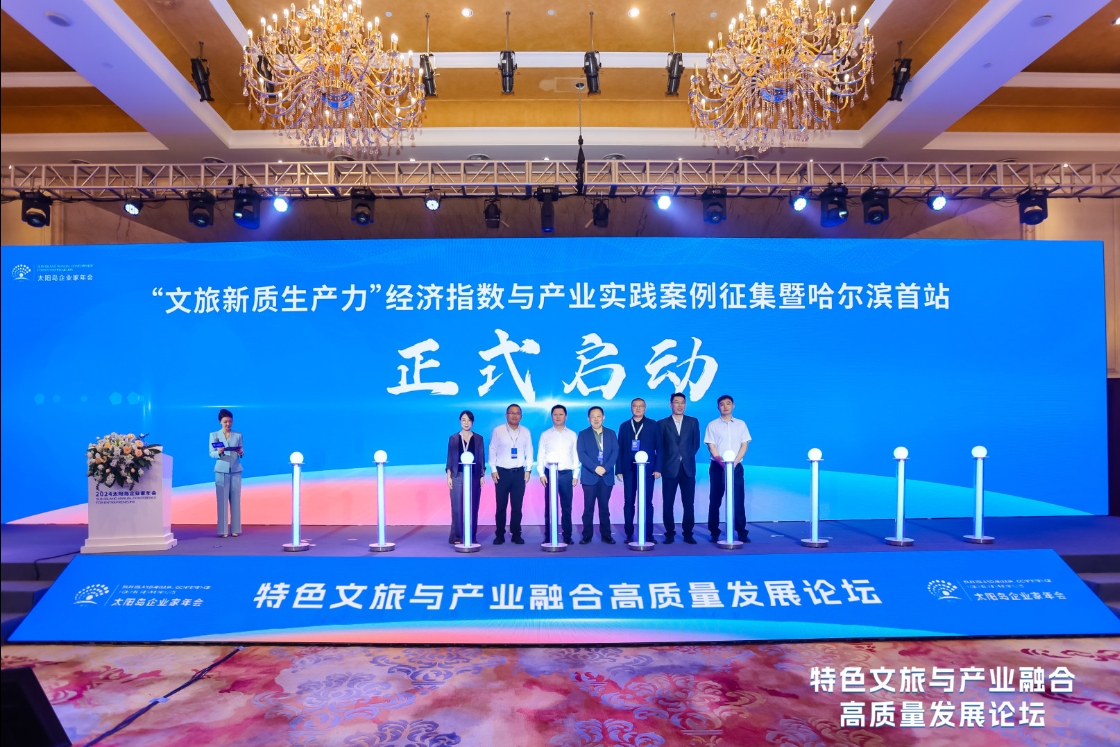 8月23日上午,2024太陽島企業家年會·特色文旅與產業融合高質量發展論壇在哈爾濱市太陽島花園酒店舉行。圖為“文旅新質生產力”經濟指數與產業實踐案例征集暨哈爾濱首站啟動儀式