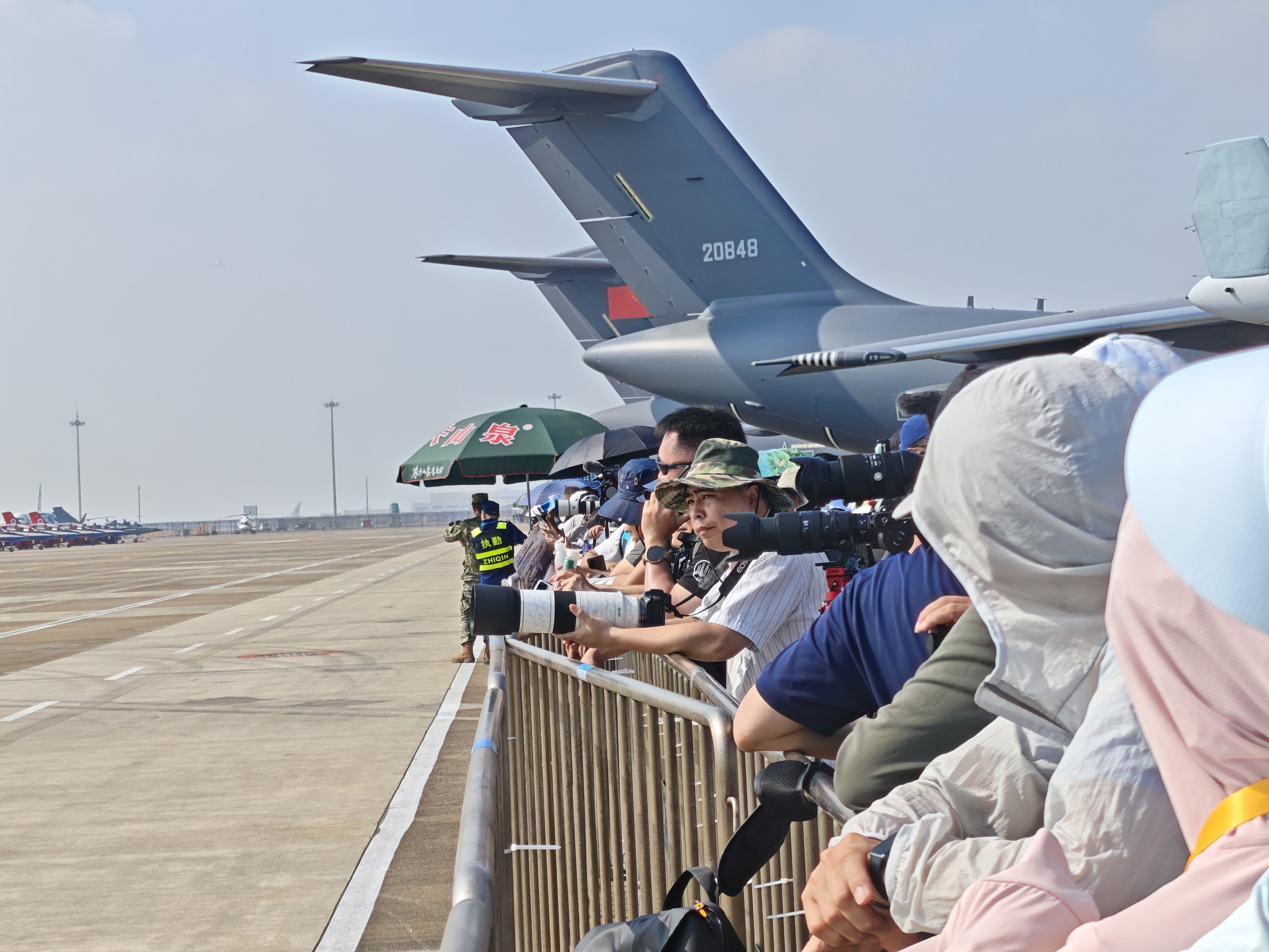 在機場跑道兩側的最高處、視角最好處站滿了觀眾,他們中有不少是專門“追飛機”的攝影師。畢業于航空航天專業的自媒體博主辛語哲說,“經常被飛行中的力量與美感吸引,航展像一座橋梁,讓觀眾了解創新與背后的歷史,承載著對航天文化的傳承與推廣?!?/p>