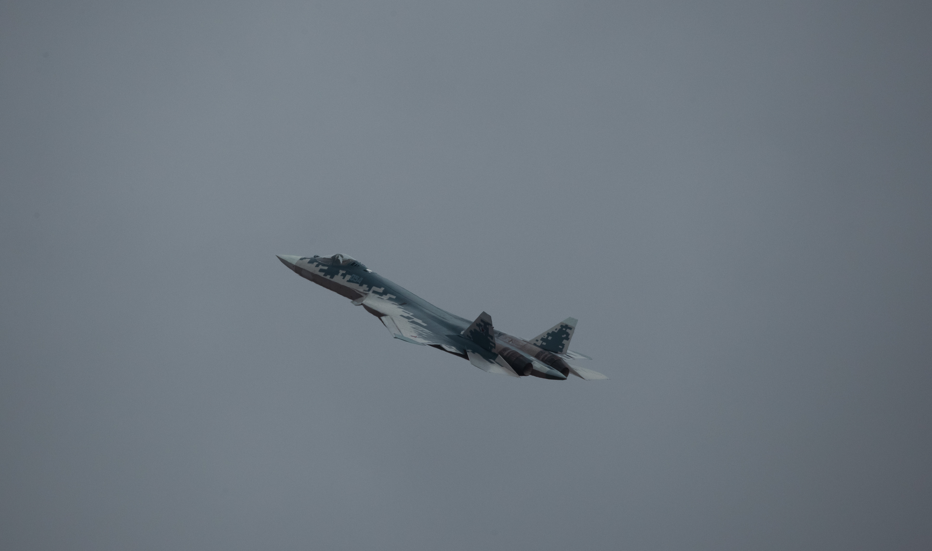 11月14日,俄羅斯蘇-57戰機在珠海航展上進行飛行表演。新華網 丁梓朔攝