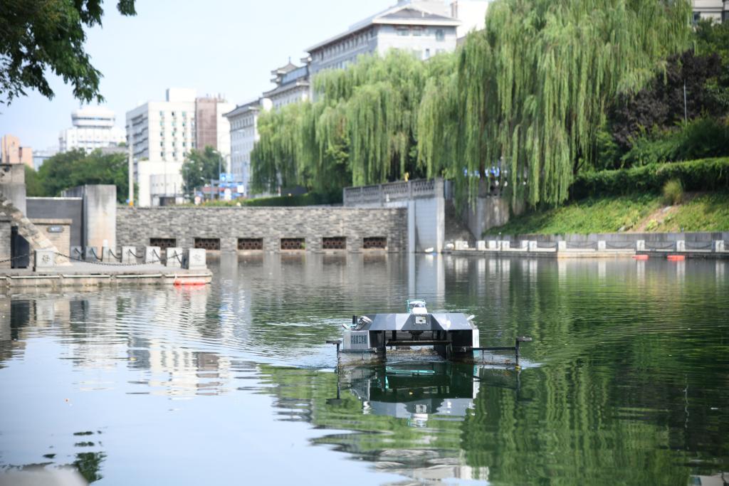 智能清潔船在西安護城河作業(2024年7月2日攝)。