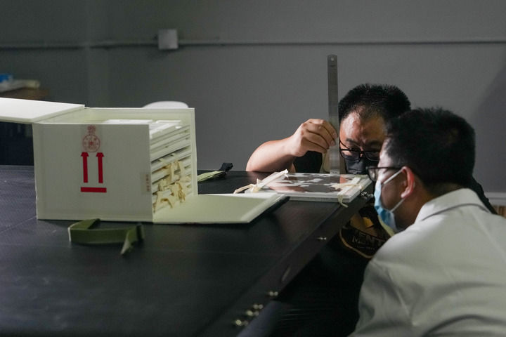 9月11日,工作人員在湖南省博物館文物庫房內準備對長沙子彈庫戰國帛書進行標準化影像采集。新華社記者 薛宇舸 攝