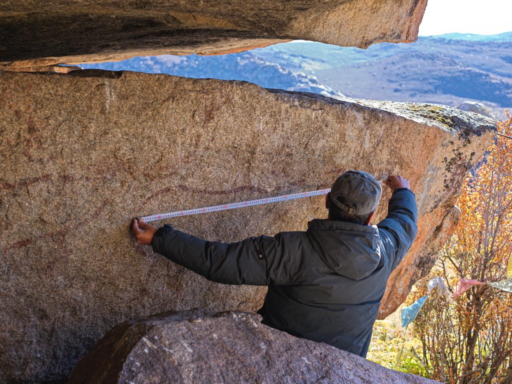 10月21日,記者跟隨四川省甘孜州稻城縣文廣旅局皮洛遺址文物保護中心負責人陳雪松,前往平均海拔4000米以上的海子山區域,探尋距今約8000年的舊石器時代“海子山—格聶巖畫群”。
