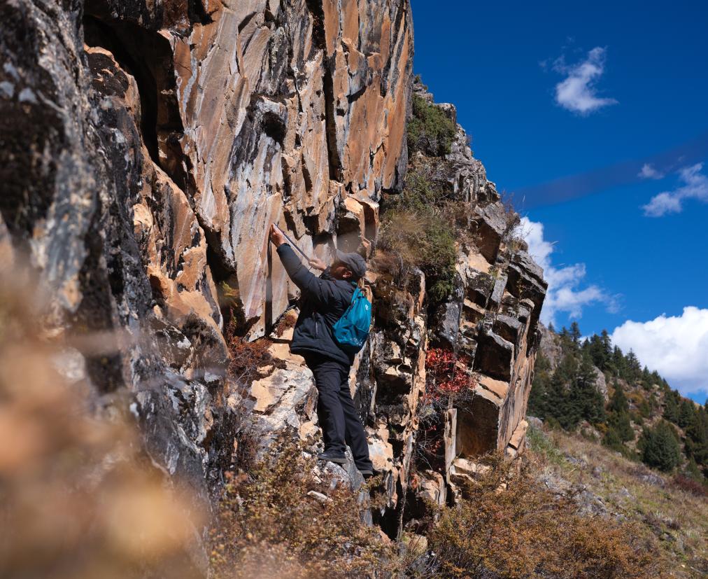 10月21日,陳雪松實地調查海子山老林溝拉托扎巖畫。