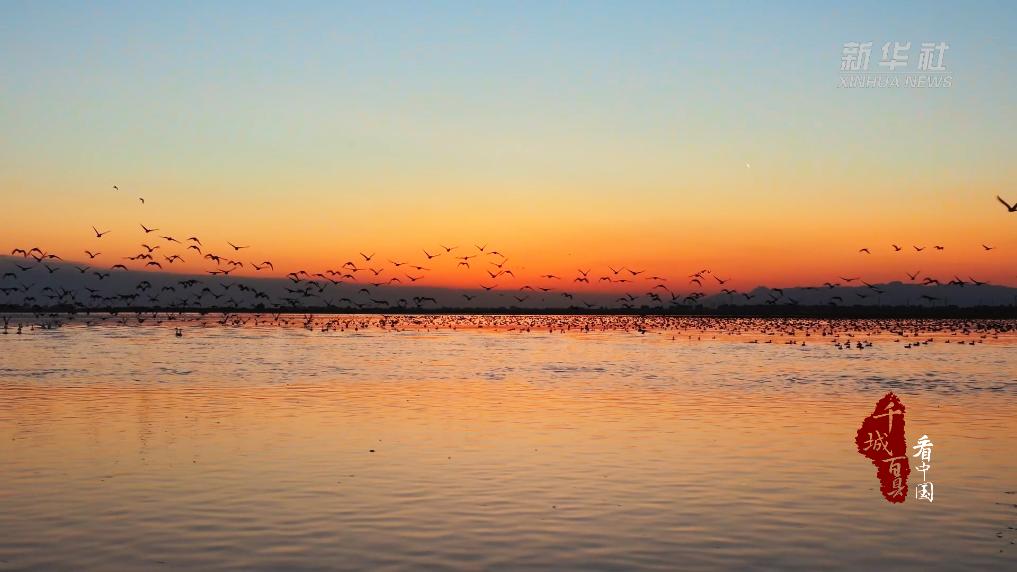 近日,內蒙古自治區呼和浩特市土默特左旗海流水庫迎來大批南歸候鳥停歇覓食。天鵝、野鴨、蒼鷺等鳥類或悠然游弋,或結伴飛翔,為天空與水面注入盎然生機。傍晚,夕陽的余暉將天空染成溫暖的橙紅色,肆意揮灑著光輝,成群的候鳥掠過天際,為這幅靜美畫卷添上了最靈動的一筆。
