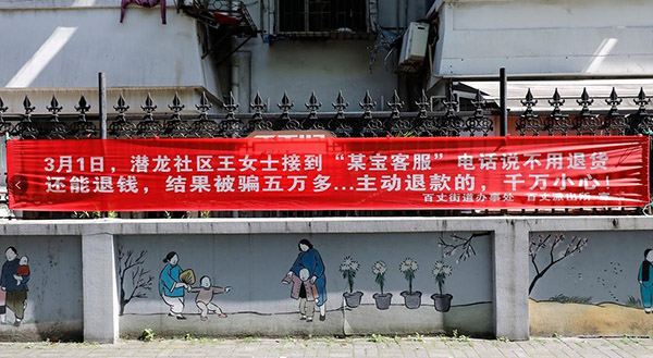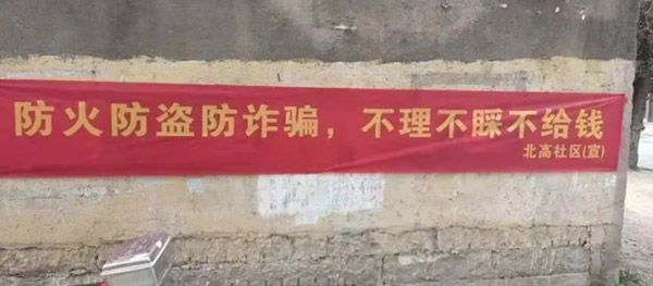 拉橫幅。一場創意無限的反詐宣傳橫幅“大賽”在街頭巷尾熱熱鬧鬧地上演。