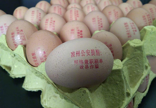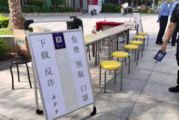 免費送送送。送印有防電信詐騙標語的雞蛋,俗稱“反詐蛋”;送口罩……