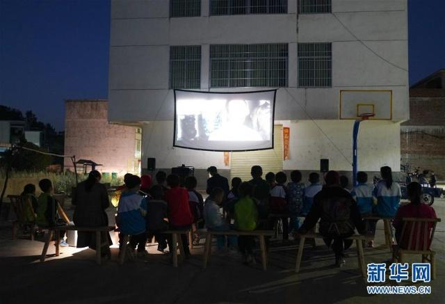 2018年10月30日,寬田鄉山下村的百姓在觀看曾紀連為他們放映的電影。 新華社記者 胡晨歡 攝