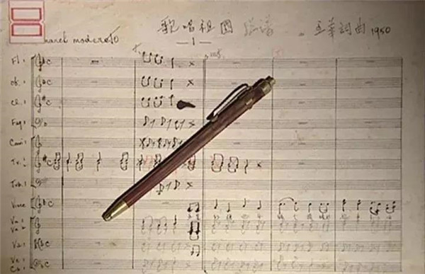 王莘用冼星海送的自動鉛筆書寫下《歌唱祖國》手稿