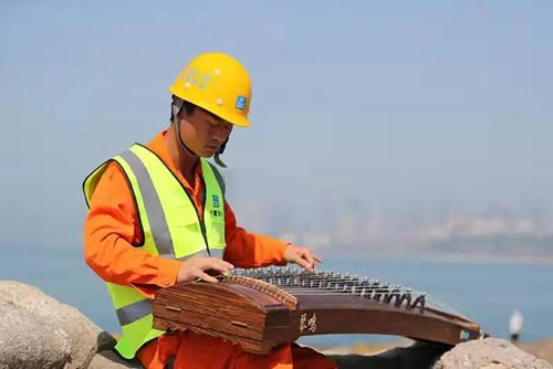 工作時,他高空行走在鋼筋混凝土之間,爬上爬下,在腳手架上揮灑汗水;休息時,他水桶倒扣再放上一個安全帽,組成了琴凳,專心致志地練琴。陳江山常說,古箏,就是他的詩和遠方。