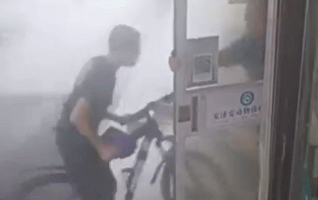 在遼寧沈陽,暴風雨突然來臨,“風力估計有8-10級”,一店主急忙主動扶著門,讓街上的行人進店躲避,他說,自己也沒多想,就想著能多幫一點是一點。