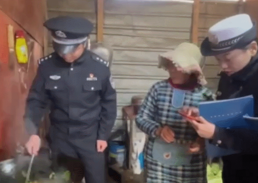 民警上門宣傳反詐,還順手幫村民炒個菜。