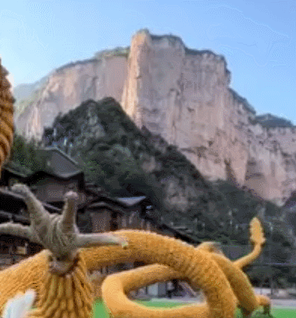 一段小伙用6萬多根玉米制作“巨龍”的視頻
