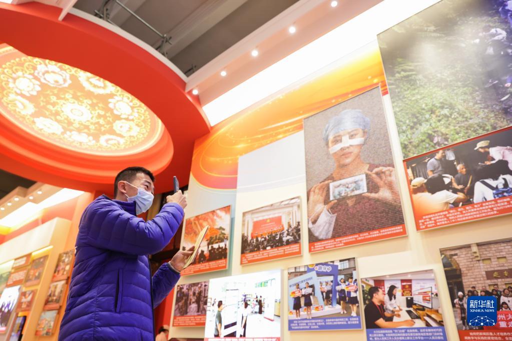 觀眾在“奮進新時代”主題成就展第五單元“堅定文化自信 建設社會主義文化強國”展廳內參觀(2022年10月10日攝)。新華社記者 張玉薇 攝