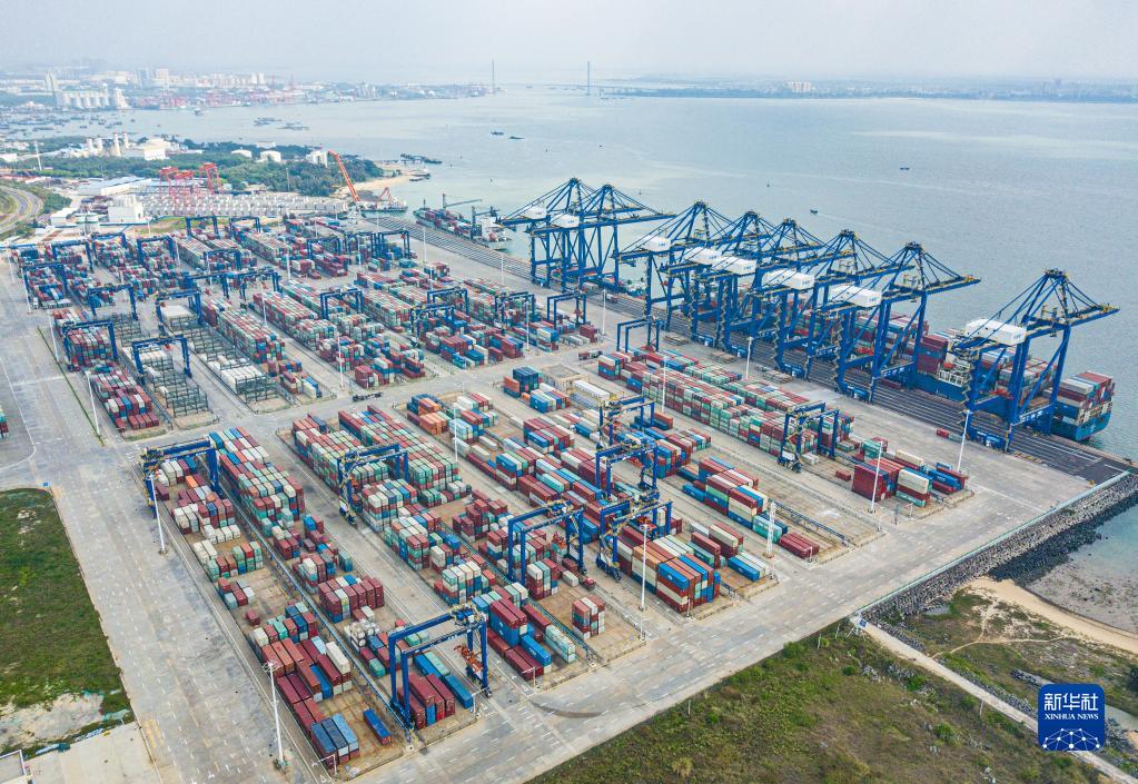 這是在海南省洋浦經濟開發區拍攝的洋浦國際集裝箱碼頭(2022年12月10日攝,無人機照片)。新華社記者 蒲曉旭 攝