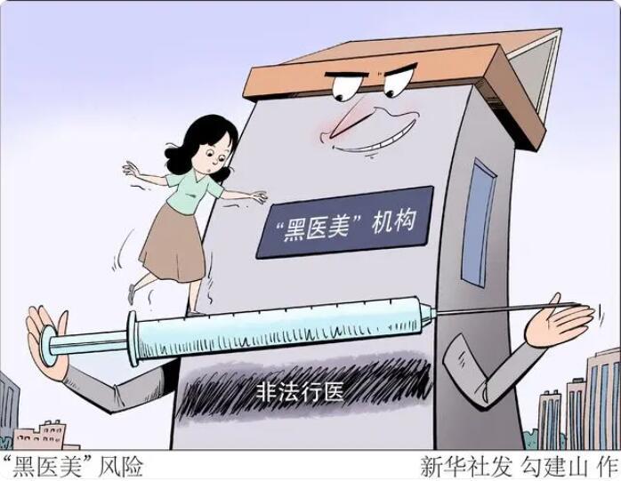 近年來“黑醫美”導致的傷殘事故、死亡事件令人觸目驚心。2023年,成都一美容院非法行醫致人失明;某地一女子經服裝店店主注射玻尿酸填充額頭,落下終身殘疾;2021年,一名19歲女孩整容時心臟驟停,被告人無行醫資格……“黑醫美”亂象叢生,讓“美”蒙塵。