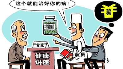 近日有媒體報道,網上有人打著中醫的幌子賣課圈錢。那些自稱“神醫傳人”“國醫名師”的講師,根本沒有培訓資質。養生保健“坑老”騙局其實并不新鮮??域_的一大“訣竅”是,渲染和利用老年人的健康焦慮。針對??永先说摹梆B生騙局”,必須持續加大打擊力度,進一步加強保健品監管。