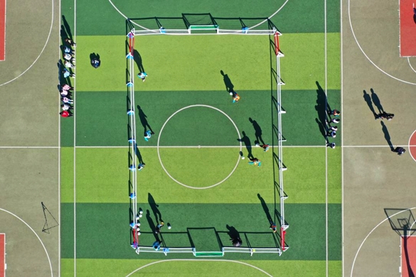 圖為足球運動相關物資在河北新河投入使用。王曉 攝