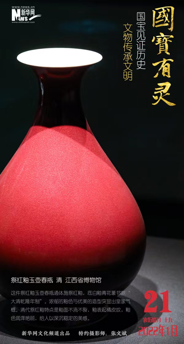 文物傳承文明,國寶見證歷史?!秶鴮氂徐`·文物日歷》由新華網文化頻道于2022年伊始隆重推出。每周七天,不間斷地介紹各大博物館的國寶精品,展示這些藏品的藝術魅力和美學價值。博物館的藏品是數千年中華文明歷史發展最為直接的見證。新華網文化頻道希望借由這小小的日歷,更好地讓文化活起來,引導讀者感受中國文化的內在精神和核心價值,獲得對中國文化的深度認知,自覺學習與弘揚中華優秀傳統文化,進而擴大中華文化的國際影響力。