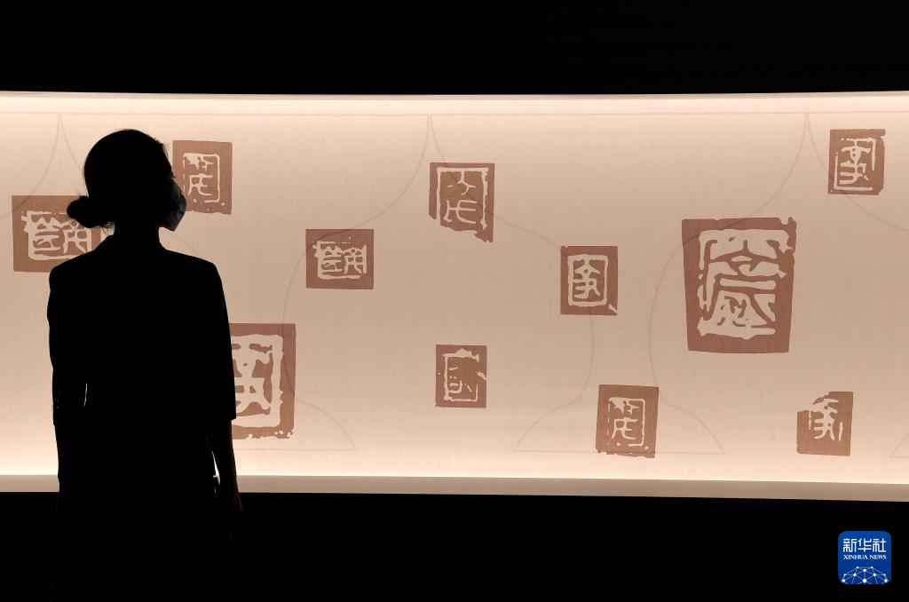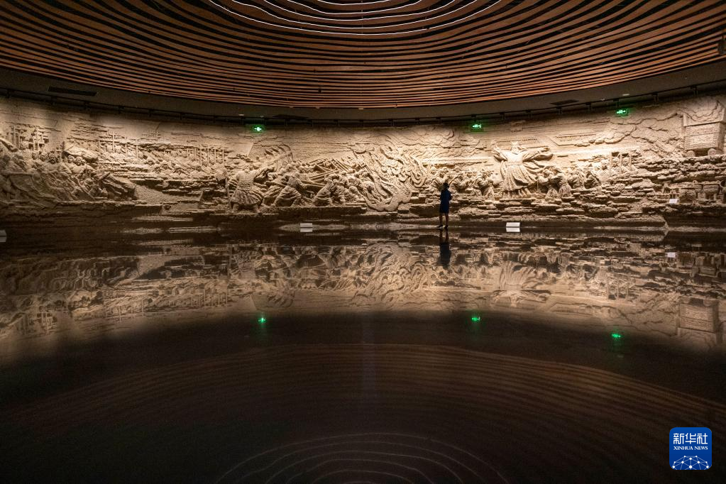 這是在鄭州商都遺址博物院展廳內拍攝的環形浮雕墻(7月26日攝)。