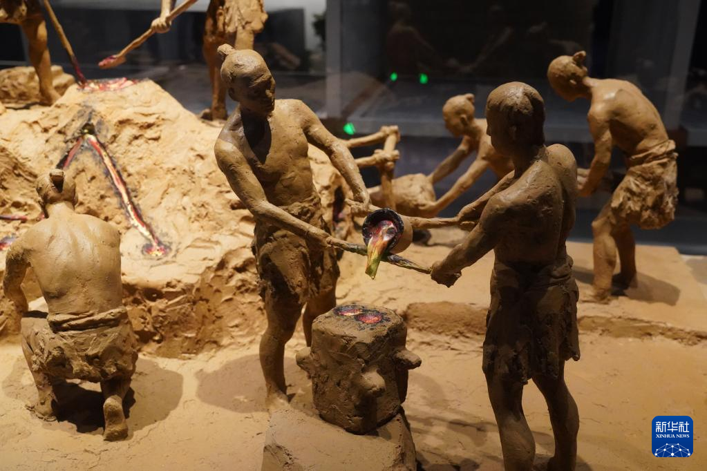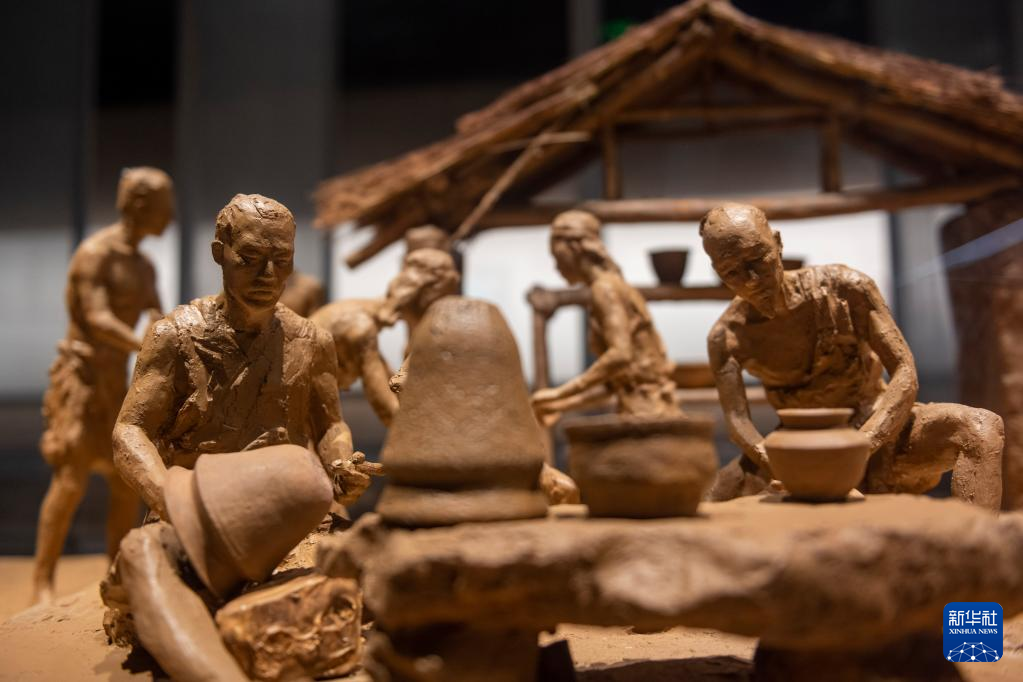 這是在鄭州商都遺址博物院內拍攝的復原的制陶場景(7月26日攝)。
