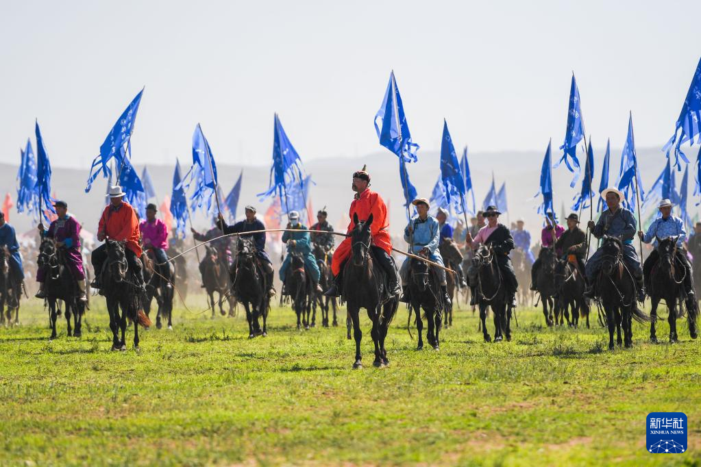 2022年7月29日,內蒙古自治區第32屆旅游那達慕在錫林郭勒盟錫林浩特市開幕,群眾馬隊方陣在開幕式上表演。如今,文化、旅游融合已成為推進內蒙古旅游產業轉型升級、可持續發展的驅動力和“催化劑”。