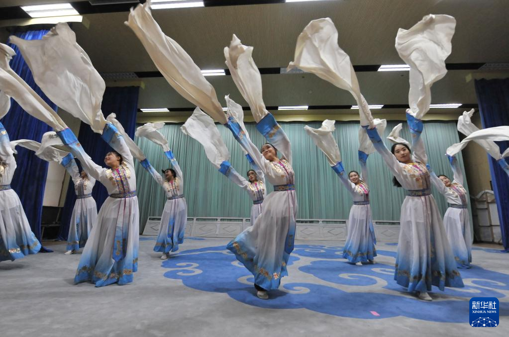 2022年1月19日,石家莊市評劇院一團的青年演員在石家莊大劇院排練廳排練。近年來,河北省石家莊市評劇院一團發揮非物質文化遺產傳承示范基地的作用,挖掘和培養青年藝術人才,加強經典劇目的保護和傳承力度,定期組織青年演員帶著經典劇目參加進農村、進社區、進校園等基層惠民演出活動,讓更多的人了解喜歡中國傳統評劇藝術。