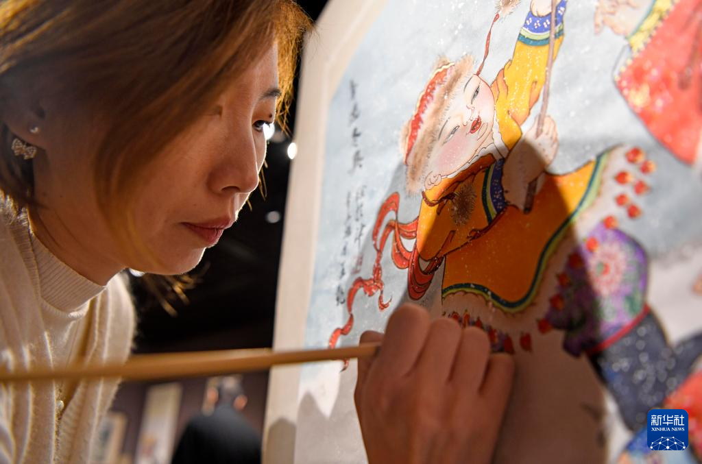 2022年2月10日,天津楊柳青畫社的青年傳承人團隊成員在創作冬奧主題年畫。天津楊柳青木版年畫興于明末清初。