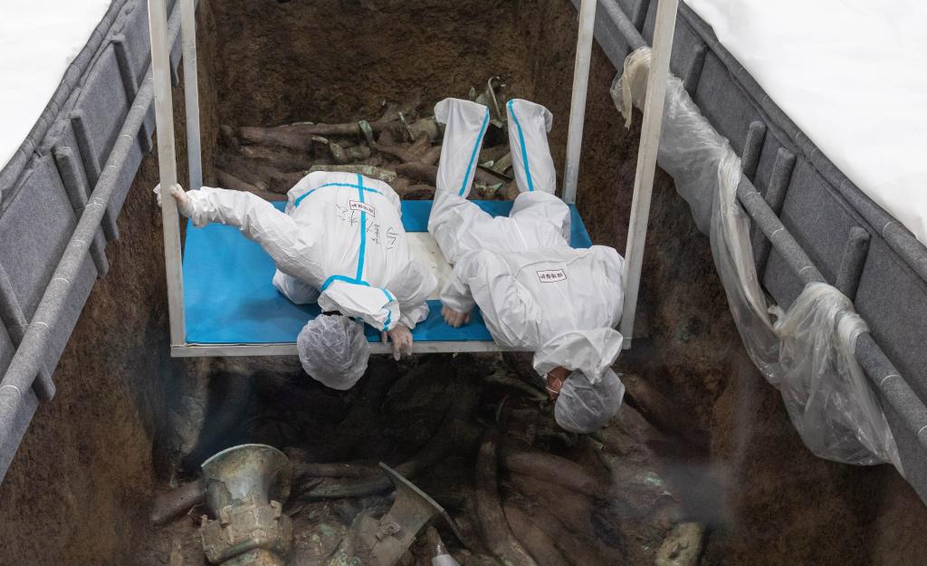 2021年3月20日,三星堆遺址考古發掘現場(新華社記者 江宏景 攝)
