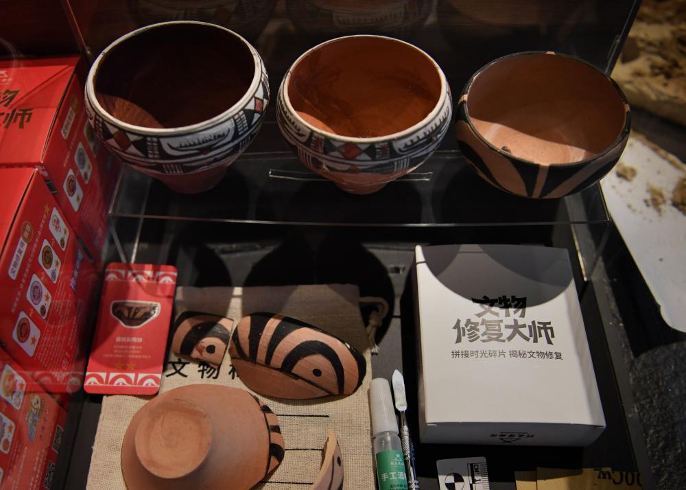 2022年5月17日,河南博物院文創商店內展示的文物修復盲盒(新華社記者 李安 攝)