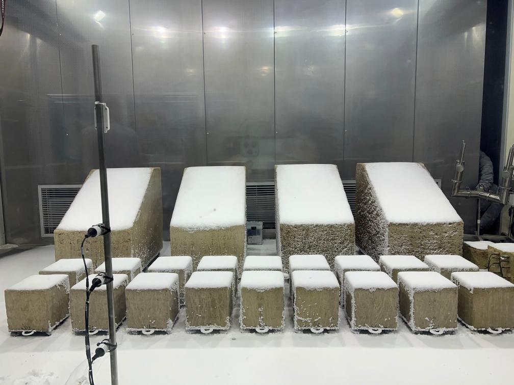在國內首個文物保護領域多場耦合實驗室,4塊覆蓋著厚厚冰雪的土方吸引了記者們的注意。雨雪風霜是實驗室的模擬對象,從莫高窟等地取來的土石將經受各種氣象條件,以揭示石窟寺風化的奧秘。