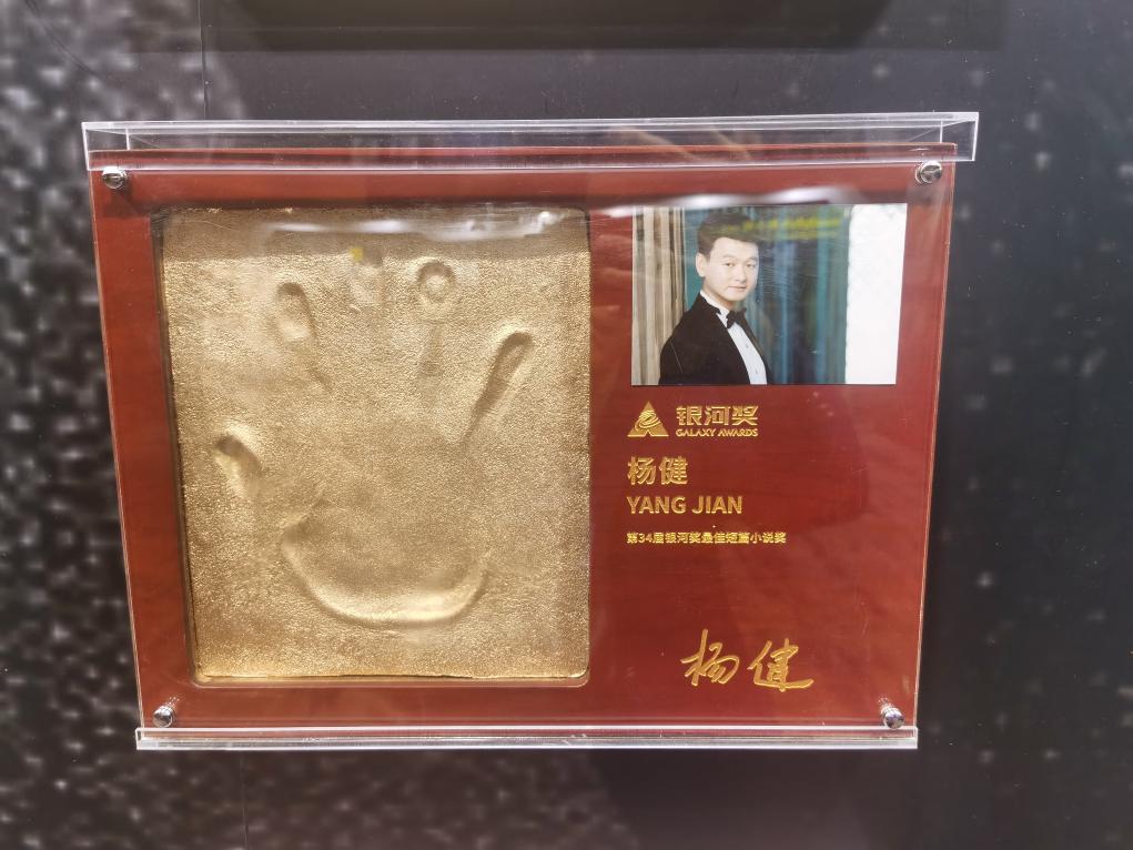 楊健獲得銀河獎后的金手模。(受訪者供圖)