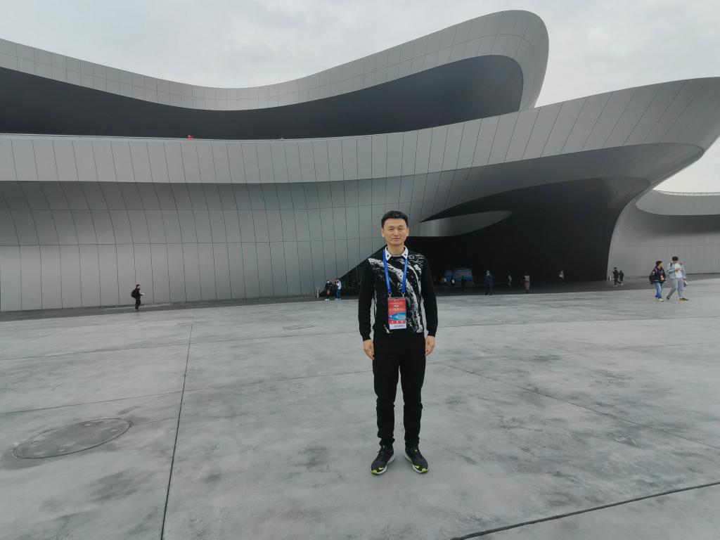 楊健在成都科幻館前留影。新華社記者 董小紅 攝