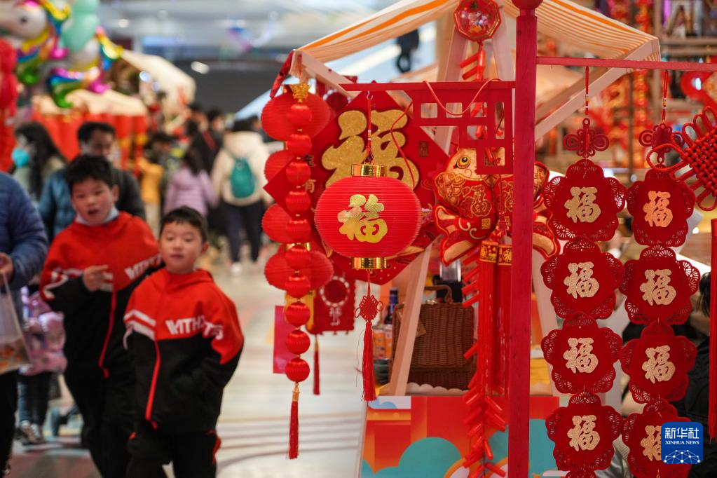 2月5日,人們在山東手造年貨大集上游玩。
