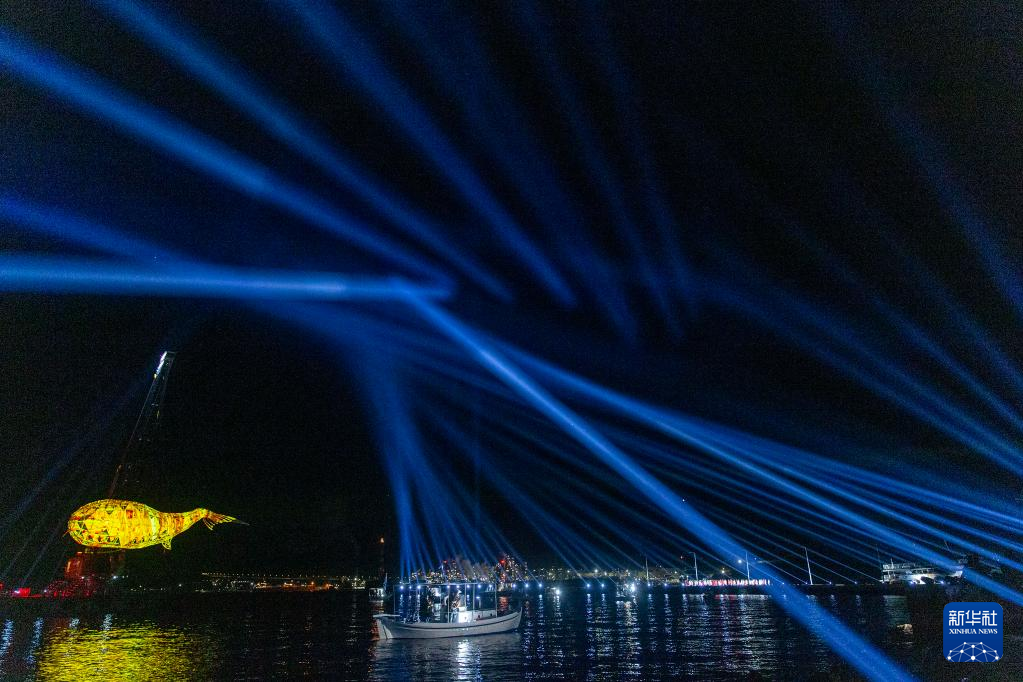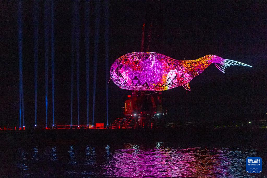 這是2月4日在希臘雅典西部的埃萊夫西斯的慶典現場拍攝的巨型機械鯨魚。