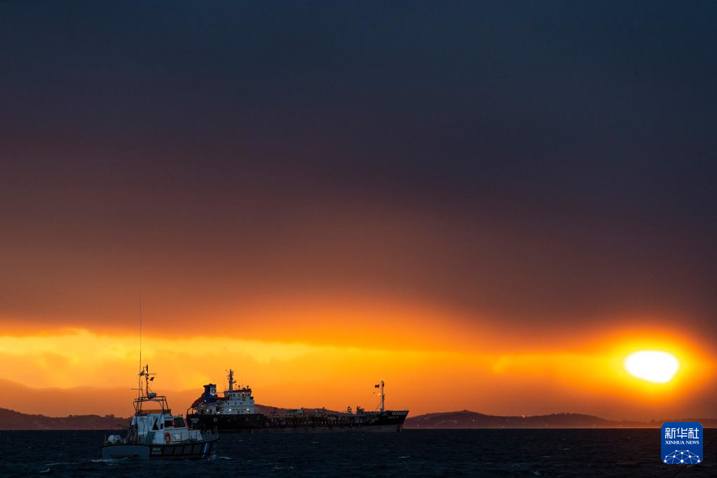 這是2月4日在希臘雅典西部的埃萊夫西斯拍攝的落日景象。