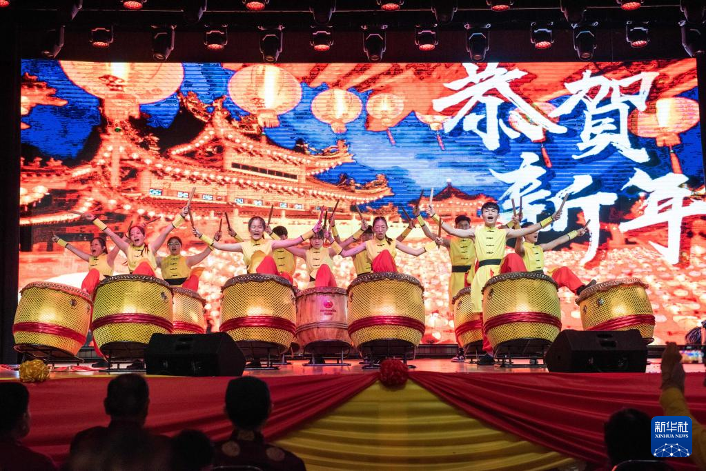 這是2月5日在馬來西亞吉隆坡拍攝的擊鼓表演。