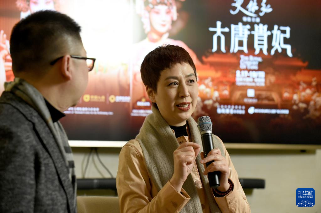 2月14日,京劇演員史依弘在媒體見面會上分享《大唐貴妃》的創排故事。