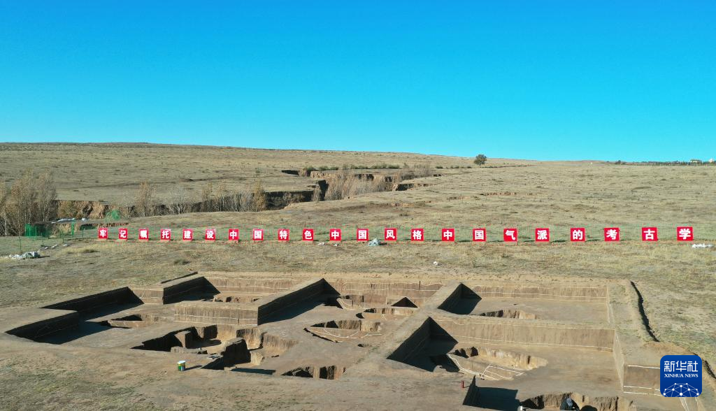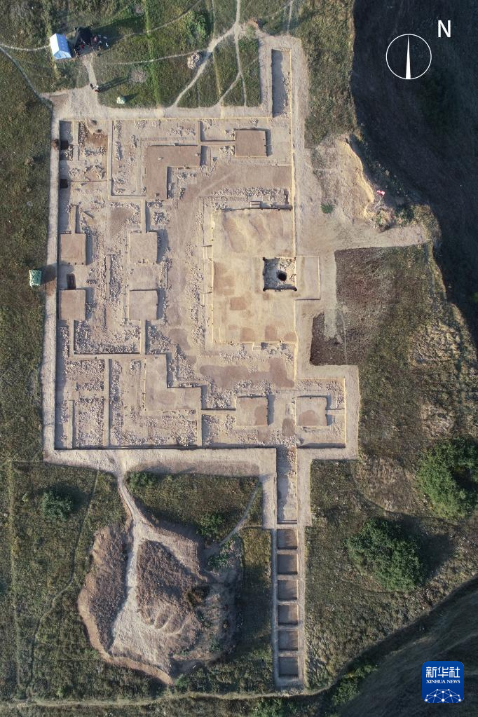 內蒙古巴林左旗遼上京皇城遺址南部一號建筑基址發掘后全景(資料照片)。