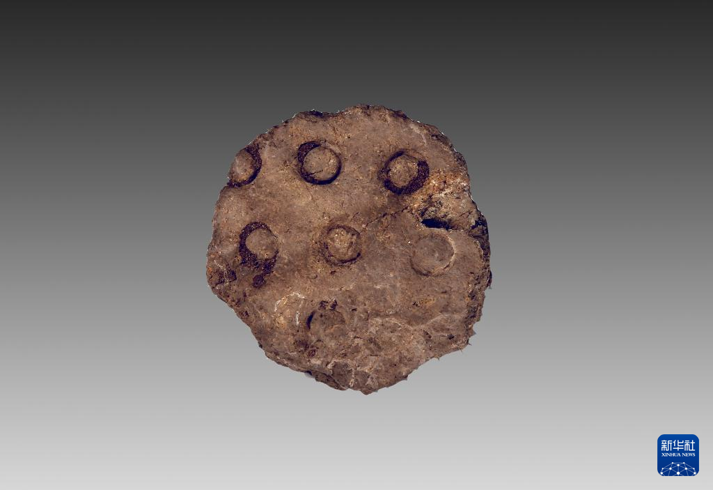 河北尚義四臺遺址出土的戳印圓圈紋陶片(資料照片)。
