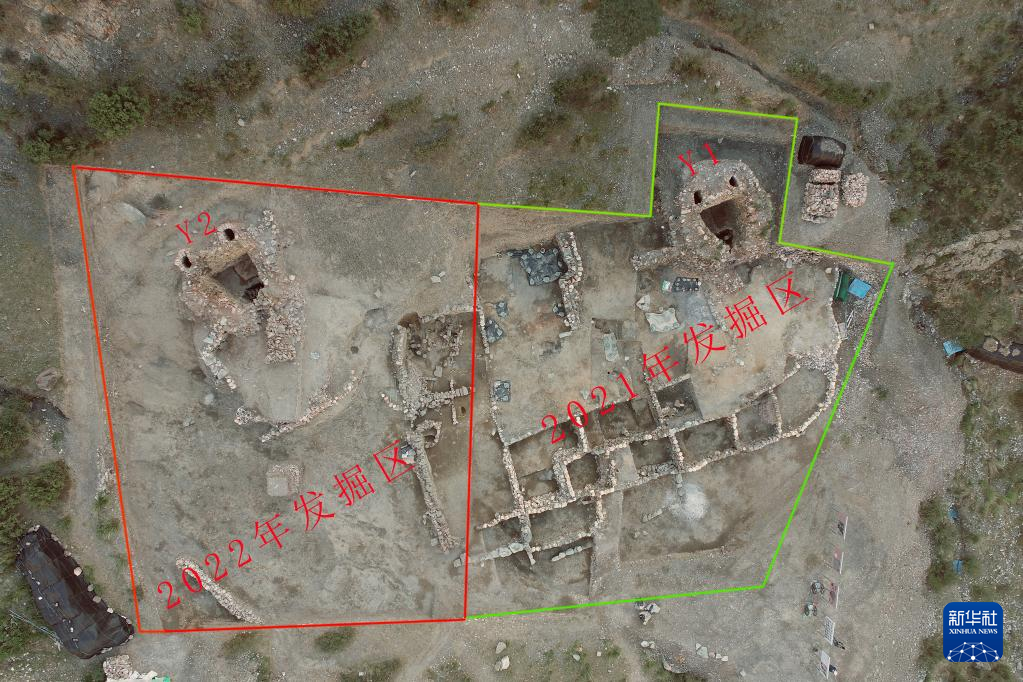 寧夏賀蘭蘇峪口瓷窯遺址2021年和2022年發掘區航拍圖(資料照片)。