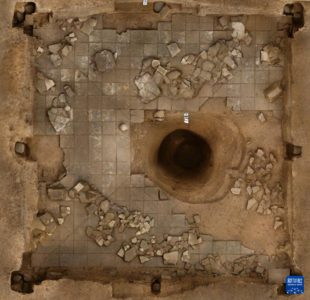 甘肅禮縣四角坪遺址中心高臺與附屬建筑發掘全景(資料照片)。