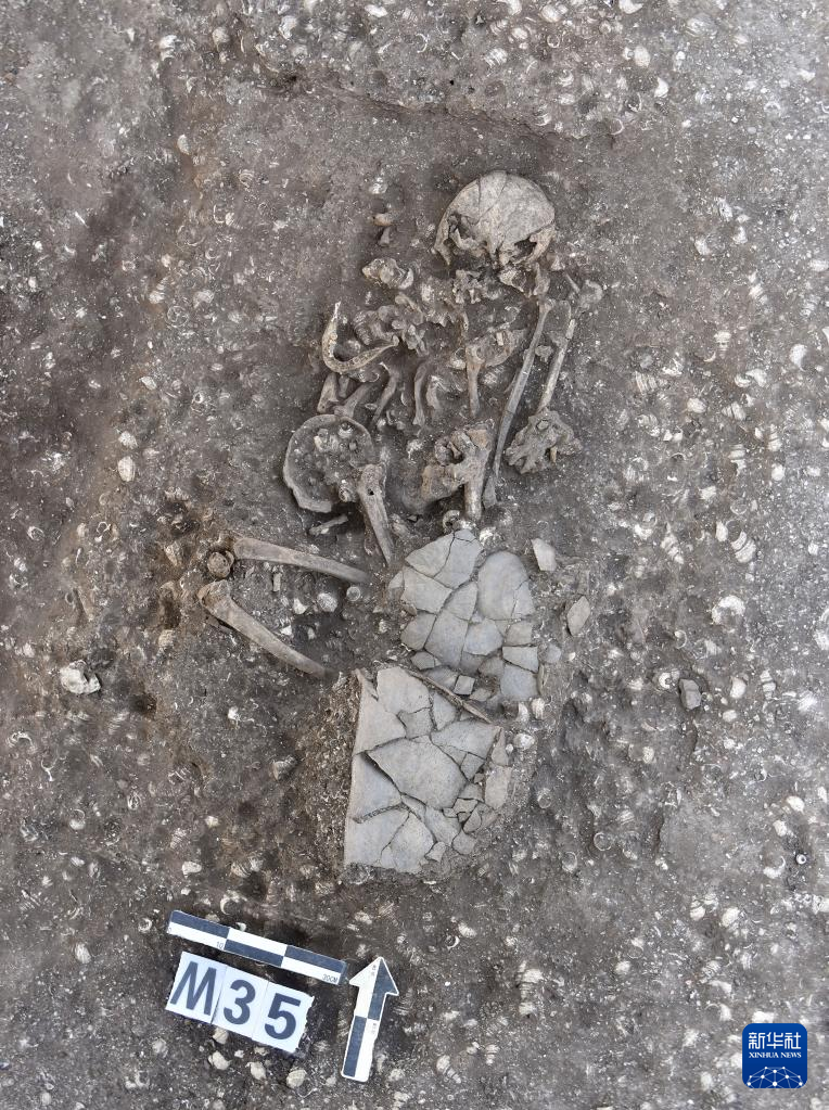 云南晉寧古城村遺址出土的商代屈肢葬(資料照片)。