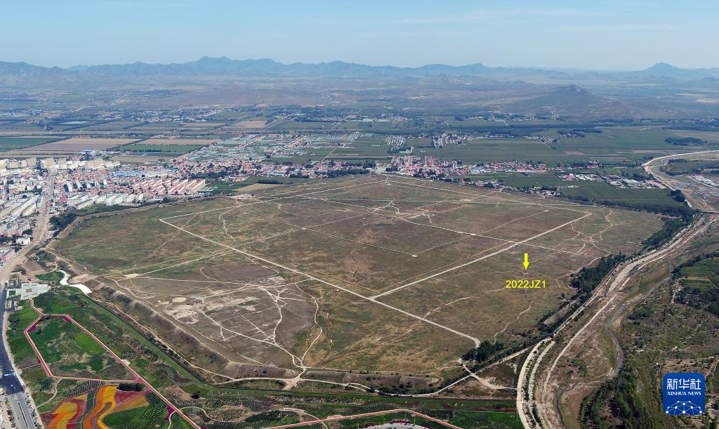 內蒙古巴林左旗遼上京皇城遺址全景和發掘位置(資料照片)。
