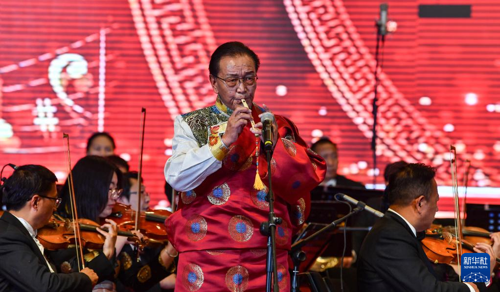 2月18日,演奏家次旦在2023年藏歷新年音樂會上表演鷹笛獨奏《雪域牧歌》。