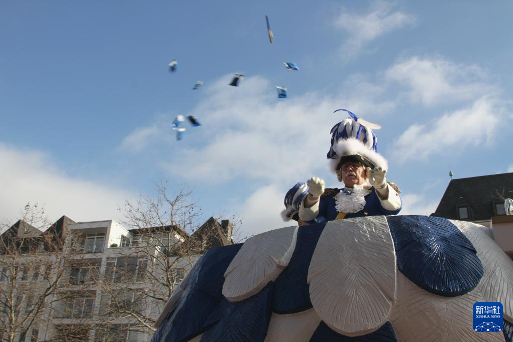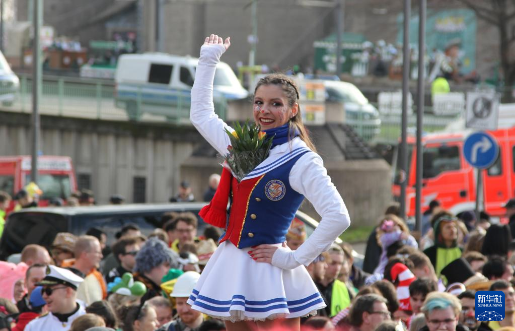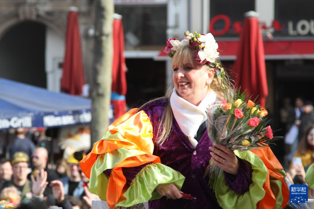 2月20日,在德國科隆,狂歡者參加“玫瑰星期一”游行。新華社記者 單瑋怡 攝