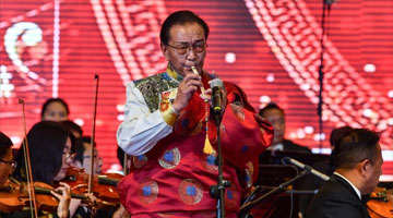 2月21日,在天津市水上公園,民間藝人表演漢沽飛镲。