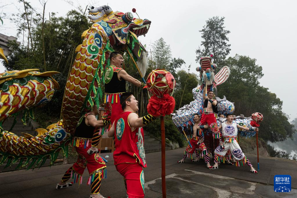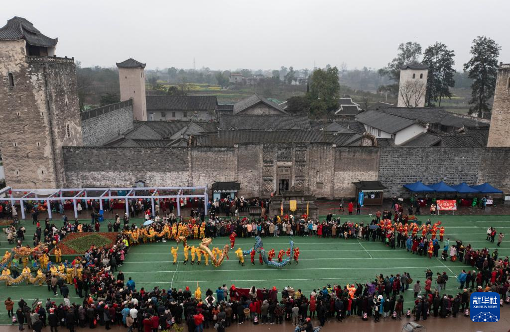 當日,四川省瀘縣在全國重點文物保護單位——屈氏莊園前舉行瀘州市2023年“二月二·龍抬頭”民俗文化展示暨瀘縣首屆“龍文化宣傳日”活動。傳統的舞龍活動表達人們期盼新的一年風調雨順、五谷豐登。