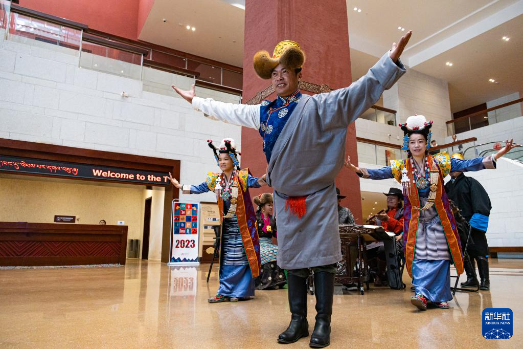 2月22日,在西藏博物館,“堆諧”舞蹈演員向觀眾謝幕。