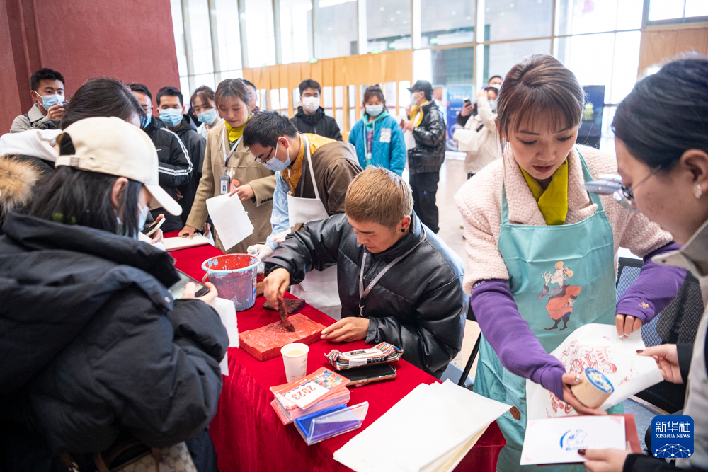 2月22日,西藏博物館工作人員將刻有“扎西德勒”的木刻印刷在紙上。