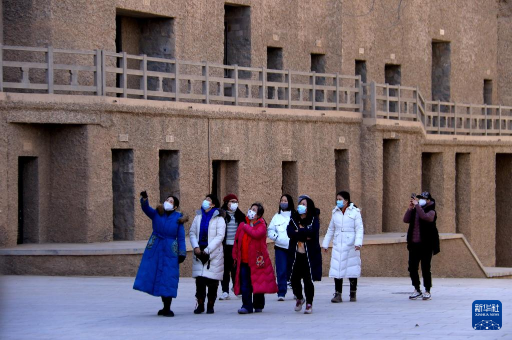 2月23日,參加莫高學堂敦煌文化研學的學員在莫高窟參觀。